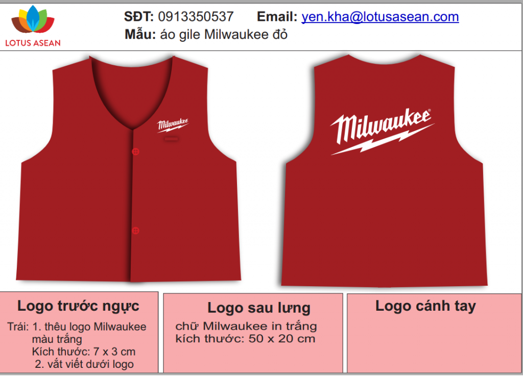 Mẫu áo gile đỏ Milwaukee